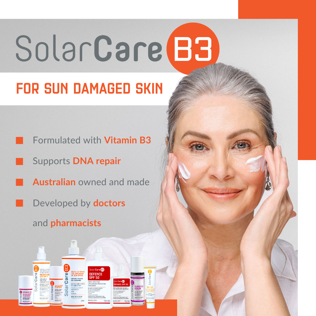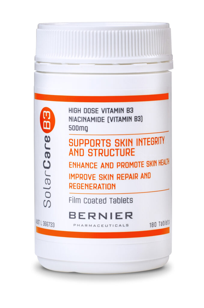 Oral niacinamide is safe to use in conjunction with topical niacinamide. For best results, we recommend taking one tablet per day, or as directed by your healthcare provider, along with an application of our topical SolarCareB3 range of products. Niacinamide taken at recommended doses is generally very well tolerated and is not associated with any common side effects.